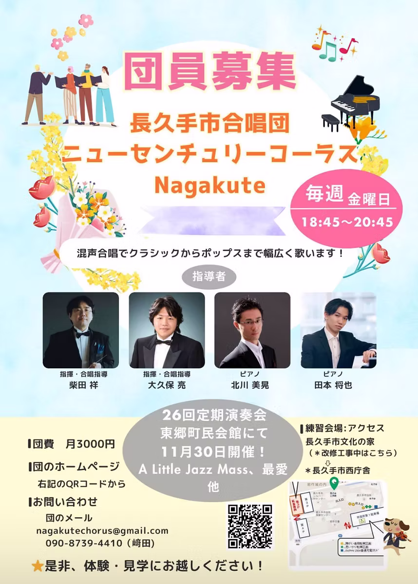 2025年より、指揮は柴田祥、大久保亮、ピアノは田本将也、北川美晃。