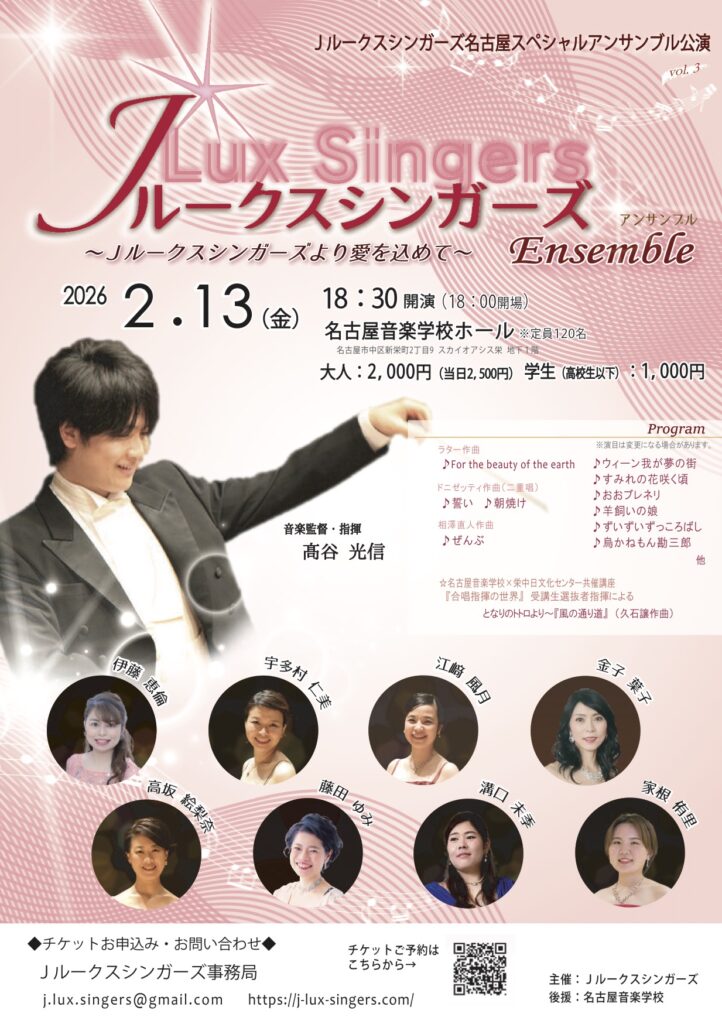 Jルークスシンガーズと同じく、音楽監督・指揮を髙谷光信、ピアノを金子葉子、北川美晃が務め、ボイストレーナーとして